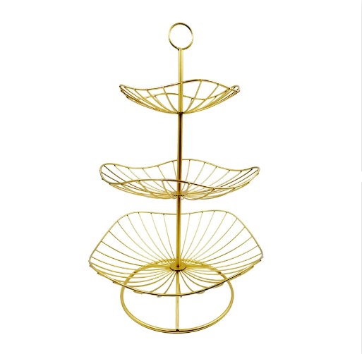 High-end paslanmaz çelik altın kek standı gümüş aperatif meyve tepsisi tatlı ekran standı üç katmanlı