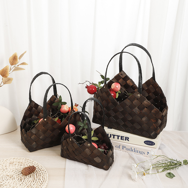 Bán Buôn Handmade Chipwood Dệt Thời Trang Tiện Dụng Giỏ Mua Sắm Giỏ Lưu Trữ Giỏ Với Xử Lý