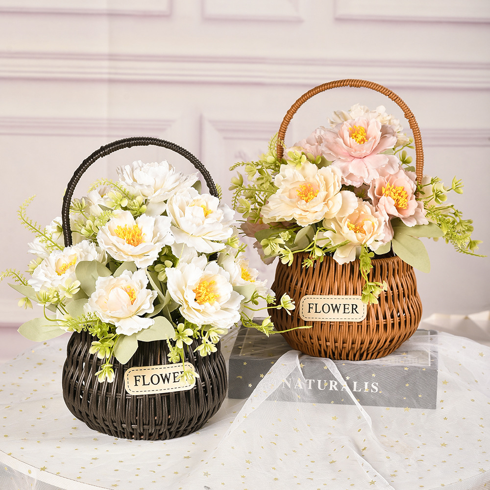 2025 nóng bán hoa phục sinh trứng trái cây lưu trữ trang trí đám cưới dệt wicker quà tặng hoa cô gái giỏ